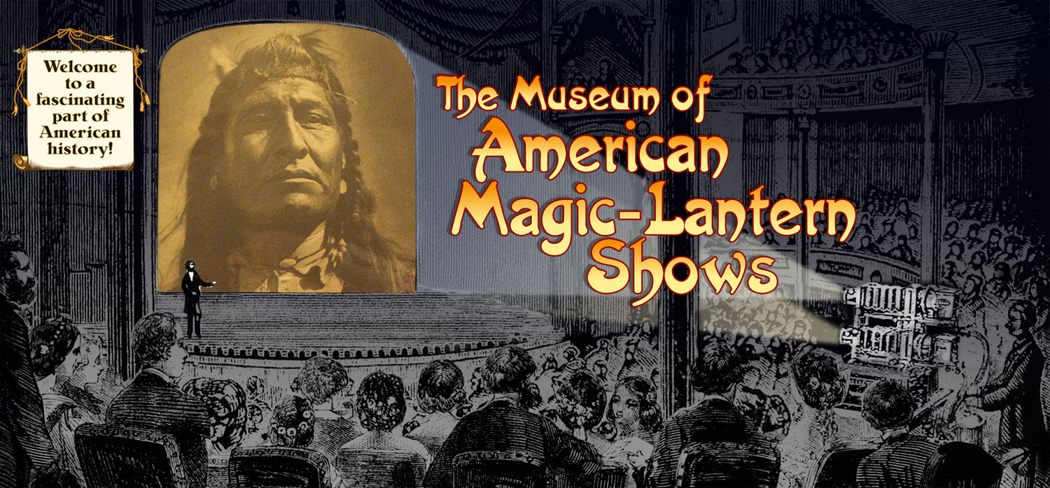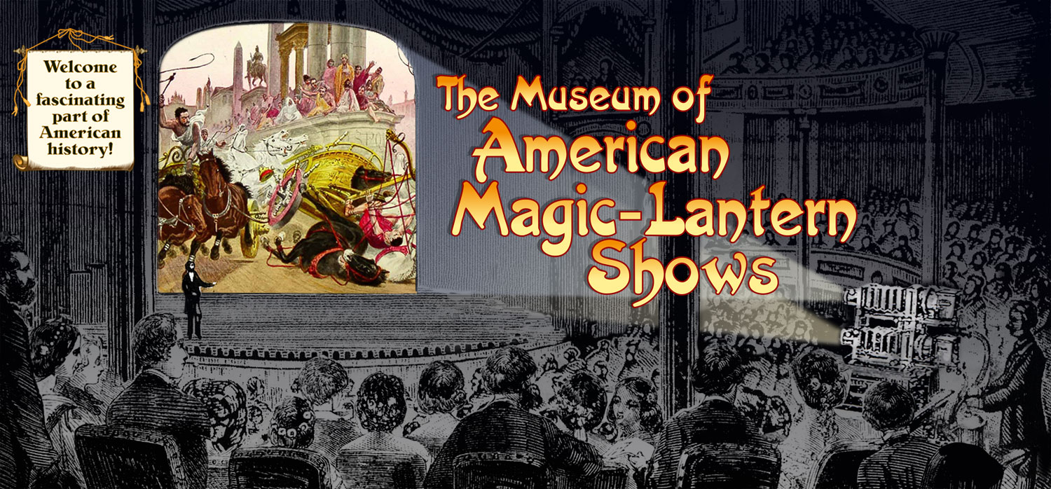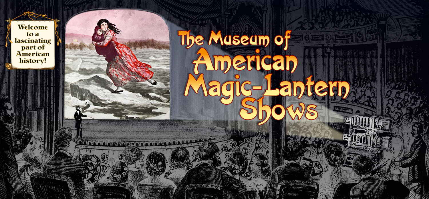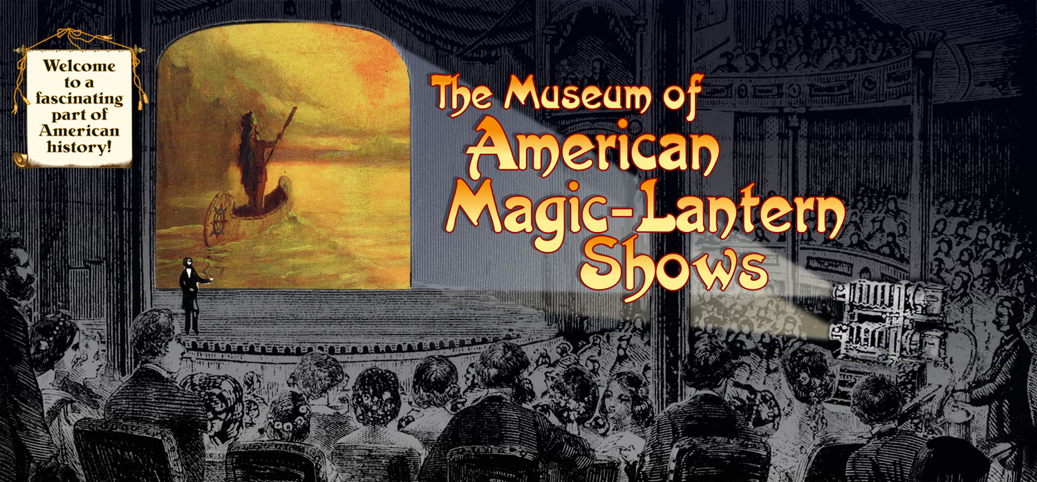 This virtual museum brings to life the way magic-lantern shows influenced every facet of American culture from the 1850s to the 1930s. The magic lantern, or “stereopticon” was the first projector, and a forerunner of the movies and cinema. Millions of people a year saw lantern shows and illustrated lectures in theaters, Lyceum halls, Chautauqua tents, fraternal societies, churches, and their own homes.In this museum you’ll see lantern broadsides, ads, and slides like those being projected in the scene above—all from the shows that help mold a nation.