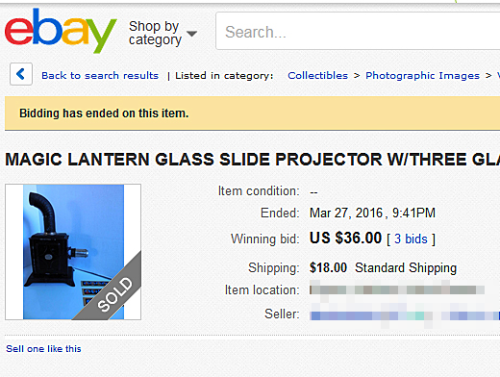 Now that you have a lantern and some slides, and have been studying the market, you’re on your own. Keep focused, establish a budget, bid only what you can afford, and be patient. Unless you have very exotic tastes, another example will come up on eBay, and sooner or later, you’ll get what you want.