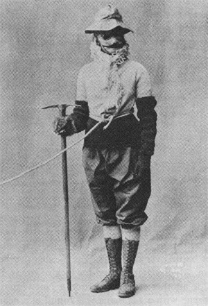 Peck was a classics professor at Smith College, and the first to climb several major mountains in South America. At one point she climbed with a wooden face mask to protect herself, on which she drew an outlandish mustache to poke fun at her male competitors. See her show here.
