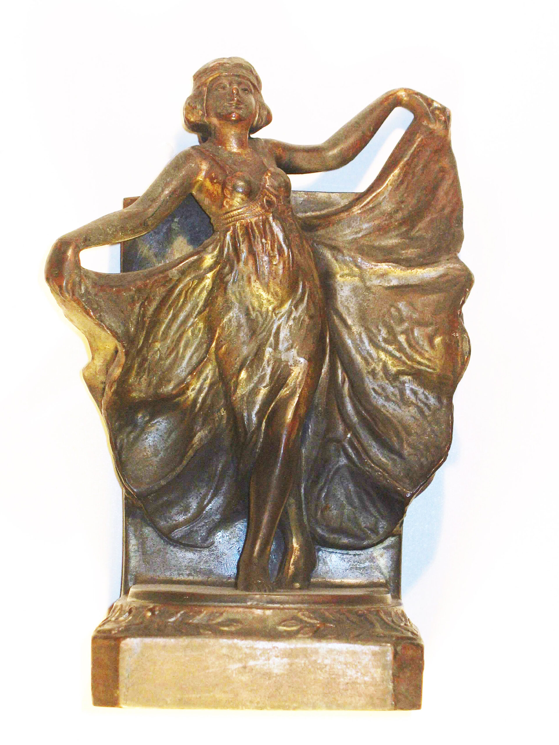 A statuette shows Fuller performing. Her flowing costume made the projected images seem to move, and inspired many art deco works such as this one.