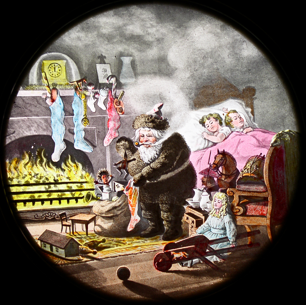 Entertainment Shows (Santa picture) are the kind most often re-created today, including the shows of The American Magic Lantern Theater (AMLT). The shows had great appeal, but they made up less than 10% of what was offered to adults in the 1890s. To see a seven-minute promo for an AMLT Entertainment Show, click here.